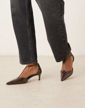 Kitten Heel Pointed Ankle Boots In Dark Brown Croc