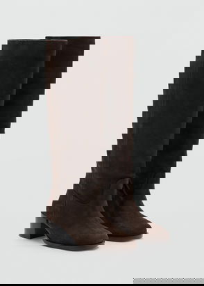 100% Suede Round Toe Heeled Western Ankle Boot In Toffee