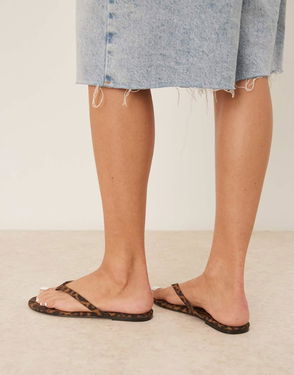 Leather Strap Detail Sandal With Gold Accents In Brown
