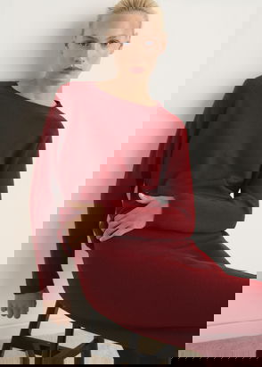 Teen Knitted Maxi Dress With Sleeve Button Detail In Burgundy