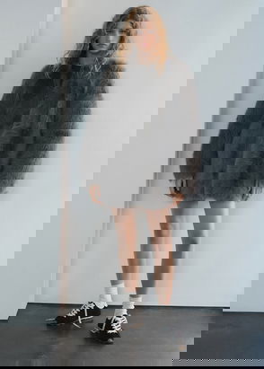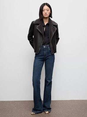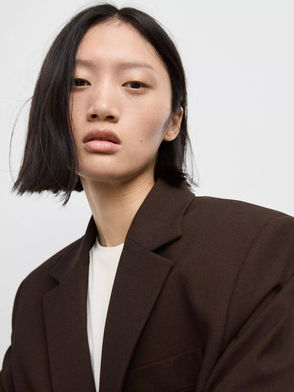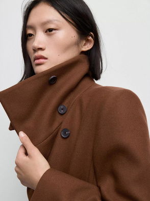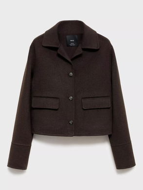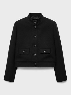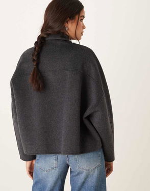 Wool Mix Funnel Neck Relaxed Short Jacket In Charcoal