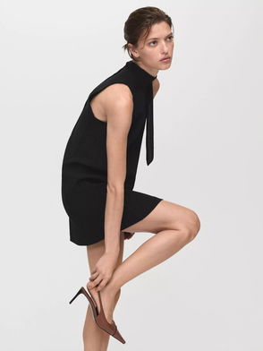 Landa Sleeveless High Neck Ruffle Hem Mini Sheath Dress