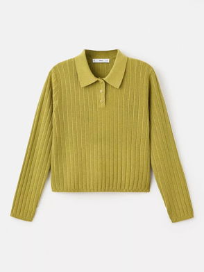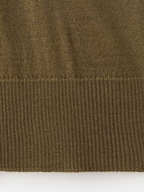100% Wool Button Up Long Sleeve Knitted Polo Top In Khaki