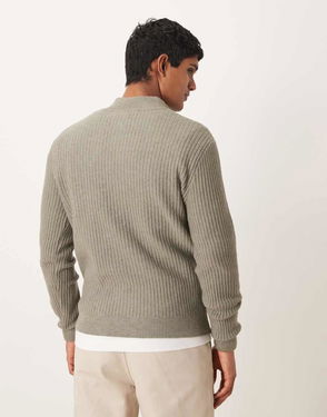 Wool Blend Quarter Zip Knitted Jumper In Sage Green