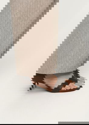 Faux Leather Peep Toe Heeled Shoe In Khaki