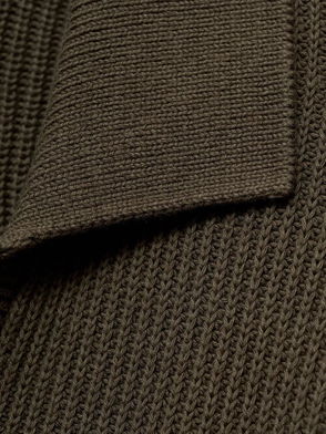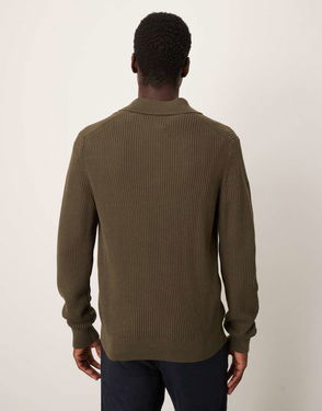 Cotton Mix Knitted Revere Collar Polo Top In Olive Green