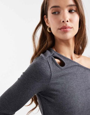 Belle Layered Fine Knit Top, Dark Grey