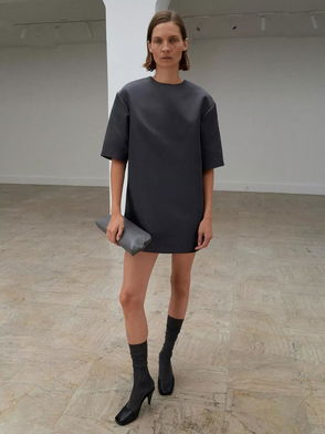 Short Sleeve Fit And Flare Mini Dress In Grey
