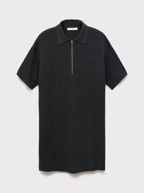 Cotton And Wool Mix Knitted Polo Mini Dress In Charcoal
