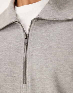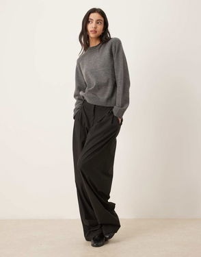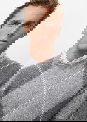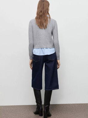 Cotton Mix Long Sleeve Knitted Top In Light Grey