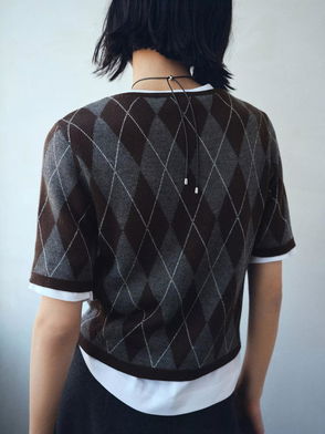 Rombus Argyle Knit Top, Grey