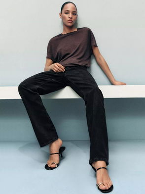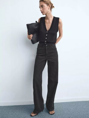 Jessie 100% Cotton Pocket Detail Wide Leg Jean In Black