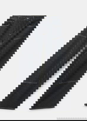 Jessie 100% Cotton Pocket Detail Wide Leg Jean In Black