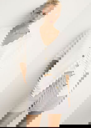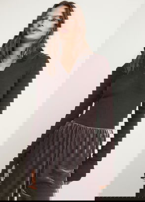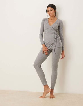 Wrap Around Ribbed Knit Pyjama Top Co-ord In Slate Grey