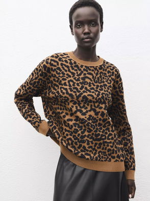 Leona Leopard Print Jumper, Ecru/Multi