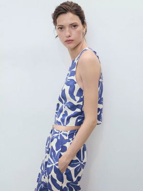 Bouquet Floral Sleeveless Top, Natural/Multi