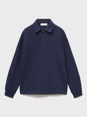 Kids' Cotton Long Sleeved Polo Sweatshirt, Navy