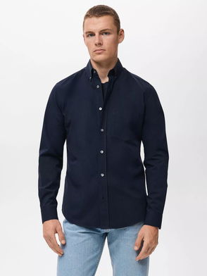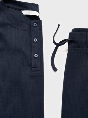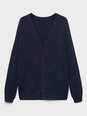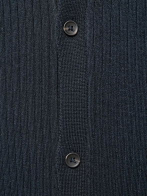 Wool Button Up Long Sleeve Knitted Polo Top In Navy