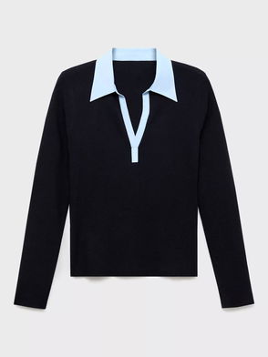 Contrast Tipping Polo Top In Navy