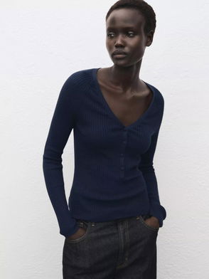 Ribbed Polo-neck Sweater With Buttons
