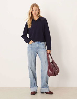 Picol Zip Neck Jumper, Navy