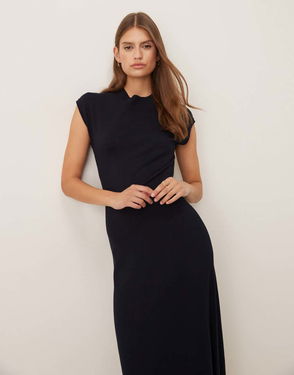 Godia Sleeveless Cowl Neck Flared Midi Dress
