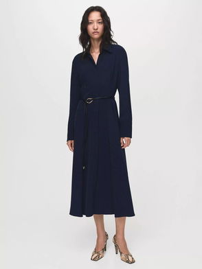 Cadet Long Sleeve Collar Midi Shirt Dress
