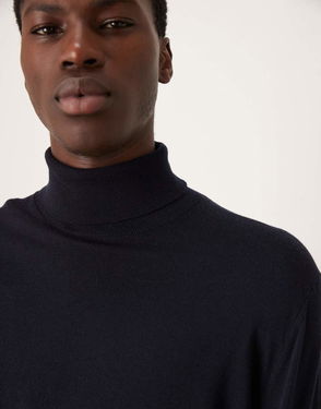 100% Wool Roll Neck Top In Navy