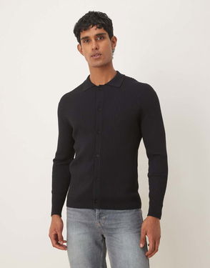 Ribbed Knitted Polo Sweater
