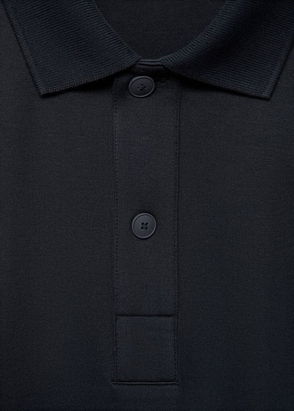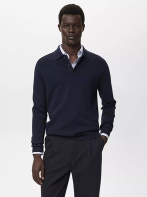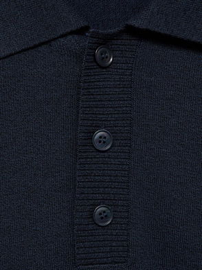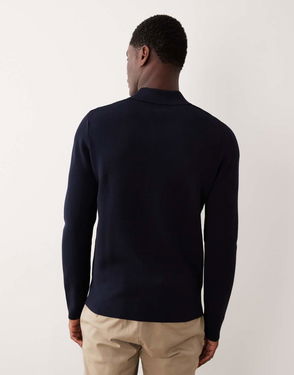 Cotton Mix Long Sleeve Knitted Polo Top In Navy