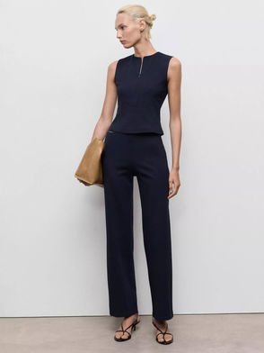 Yoli Pinstripe Tailored Jumpsuit, Navy
