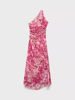 One Shoulder Ruffle Detail Maxi Dress In Pink Animal Print