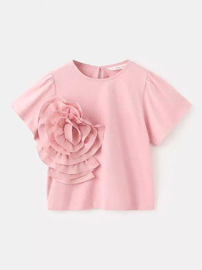 Sculptural Rosette Appliqué Boxy T-Shirt