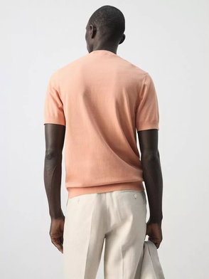 Regular Fit Crew Neck Cotton Knit T-Shirt, Salmon
