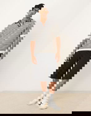 Cotton Mix Relaxed Polo Short Sleeve Top In Black And White Stripe