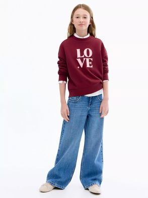 Kids' Gaby Oversized Denim Jacket, Dark Red