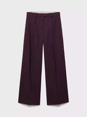 Cotton Pleat Front Wide Leg Jean In Dark Red