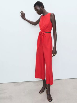 Lana Knot Detail Jumpsuit, Red