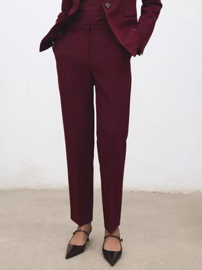 Pleat Front Tailored Trouser Co-ord In Dark Red