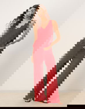 Knitted Soft Touch Wide Leg Trousers In Dark Red