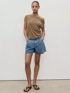 Linen Mix Fold Over Waist Bloomer Short In Pale Pink