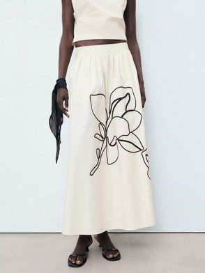 Bari Embroidered Floral Skirt, Natural White