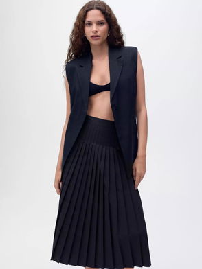 Pili Pleated Midi Skirt, Navy