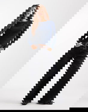 Roll Neck Long Sleeve Top With Flared Sleeves In Brown