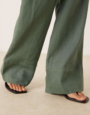 Linen Slouchy Tie Waist Trouser Co-ord In Sage Green