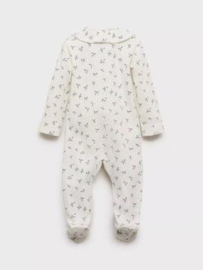 Baby Cotton Dotted Print Bodysuit, Natural White