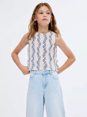 Kids' Andy Cotton Blend Sleeveless Floral Top, Natural White