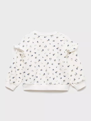 Kids' Cotton Frill Sleeve Floral Jumper, Natural White