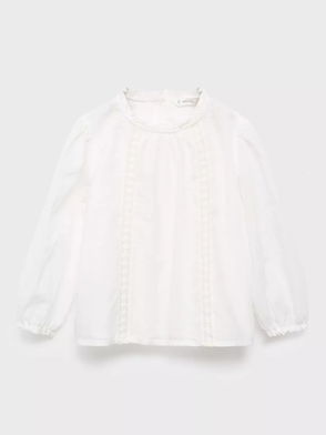 Kids' Isabella Cotton Long Sleeved Blouse, White