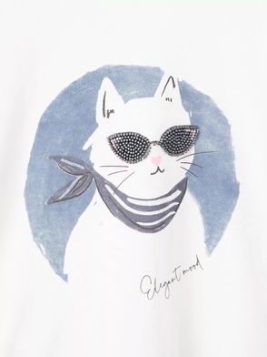 Kids' Cotton Long Sleeved Cat Print Top, Natural White